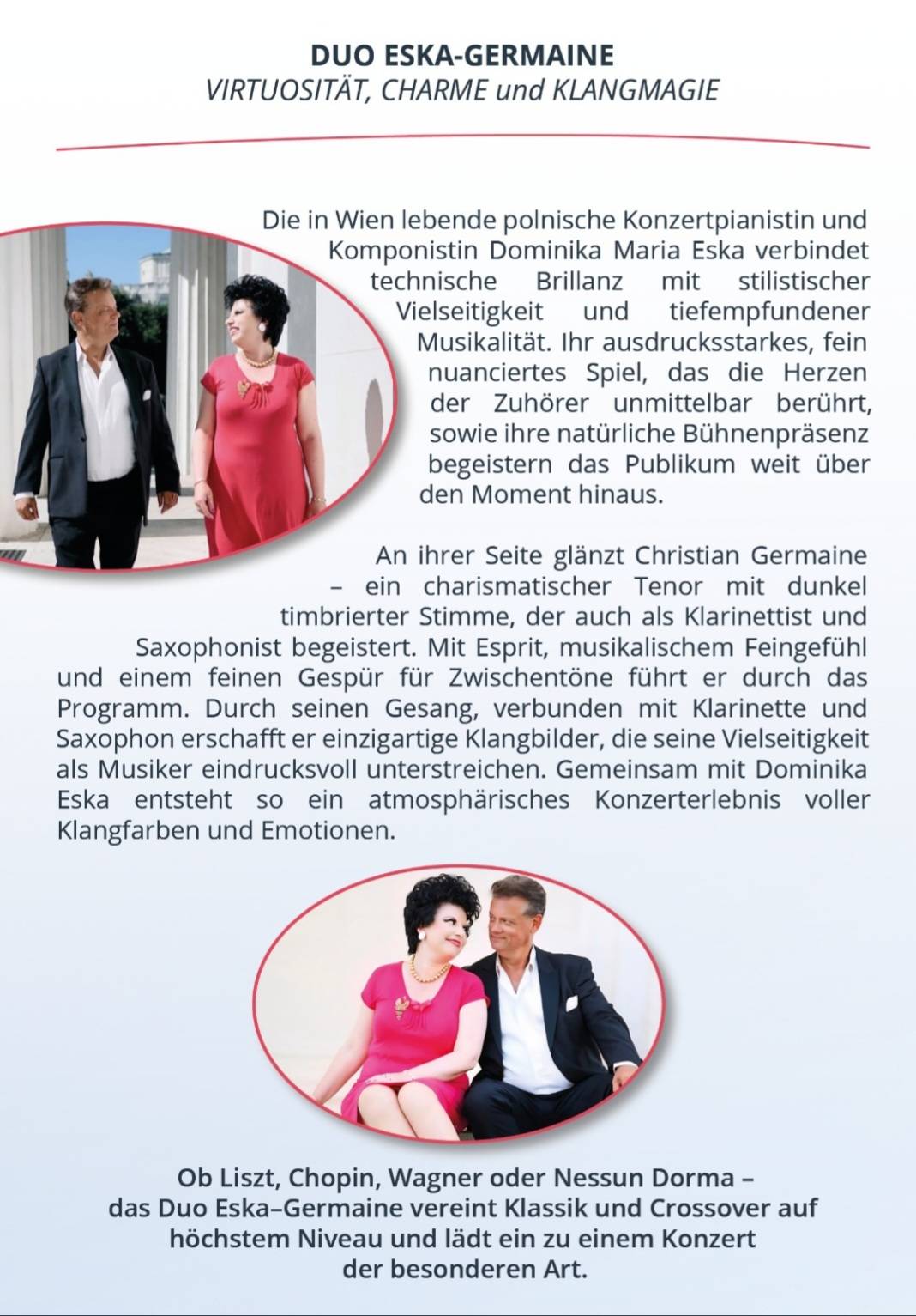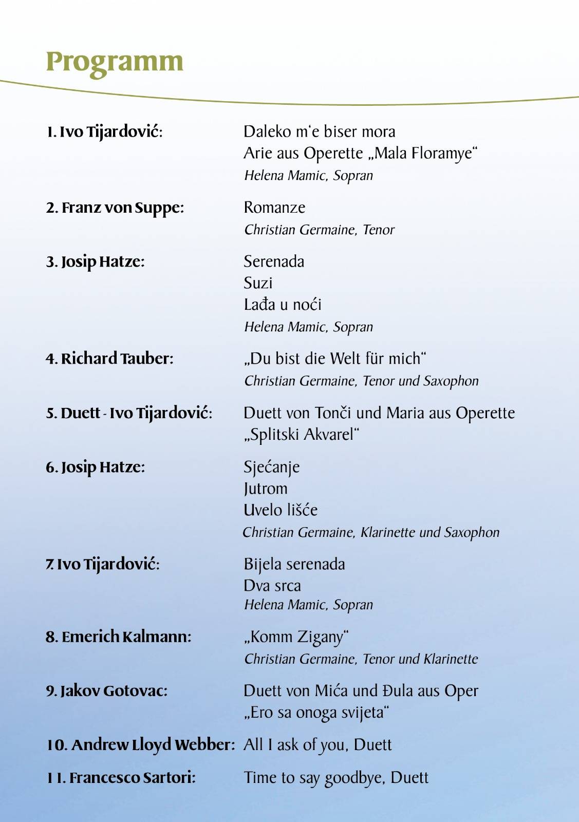 Christian Germaine ist ein vielseitiger dramatischer Tenor, Dirigent und Multiinstrumentalist, dessen künstlerisches Profil auf einer breit gefächerten und kosmopolitischen musikalischen Ausbildung beruht. Geboren in Mannheim, studierte er zunächst Klarinette und Saxophon bei Professor Hans Pfeifer an der Musikhochschule Mannheim sowie Gesang privat bei Wilhelm Roser. Später erwarb er den Master of Music in Dirigieren an der renommierten Eastman School of Music in Rochester, New York, wo er bei Donald Neuen, David Effron und Dr. Timothy Koch studierte.